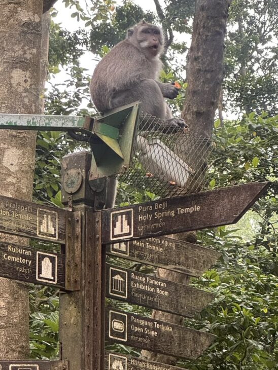 Monkey Forest: En meget smuk og grøn park med templer og fine skulpturer. Meget Indiana Jones. Men parken er fuld af aber. Deraf navnet. De er frække og stjæler gerne folks tasker, mobiler og snacks.