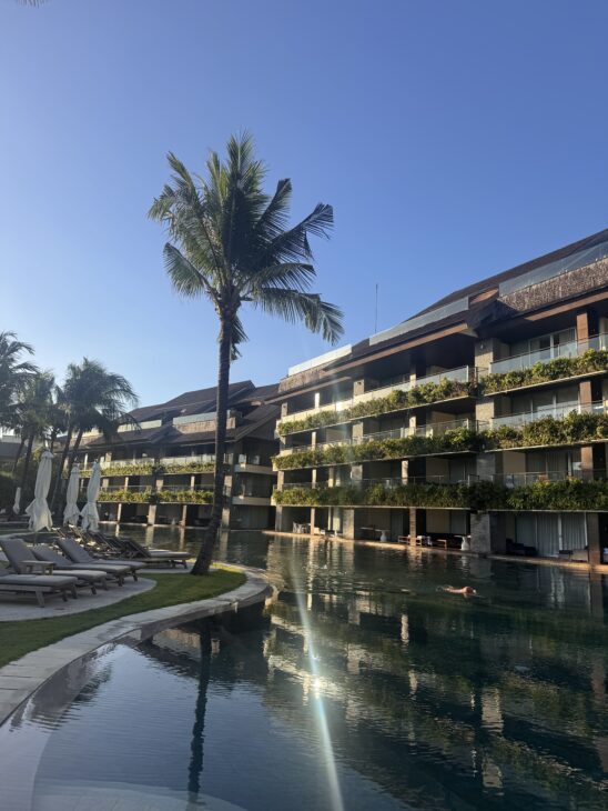 Como Uma i Changgu: Et absolut lækkert luksushotel med en imponerende morgenmad, gratis morgenyoga, fitness center, spa og to fantastiske pools. Hotellet ligger centralt i influencer/expat området Changgu. Vi var glade for at kunne “lande” et sted, hvor der var styr på tingene og hvor vi med det samme kunne orientere os i priserne på gaden. Vi fik absolut femstjernet luksus til 1200 kr. for en overnatning. Maden er virkelig god og hotellets sundhedsområde og spabehandlinger er helt i top. Beach baren er perfekt til solnedgang. Og ti minutters gang langs stranden bragte os til det mere rustikke men cool surfområde Pererenan Beach. Vi bookede Como Uma direkte gennem deres website.