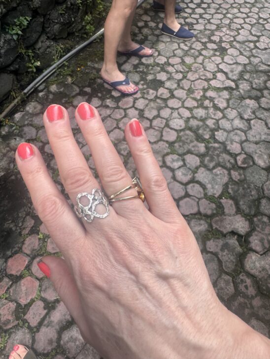 Sølv workshop: Vi lavede vores egne sølvringe i en sjov workshop centralt i Ubud. Vi valgte design, smeltede sølv og formede det til fine ringe. Godt hjulpet af kompetente sølvsmede. Booket gennem Tripadvisor.