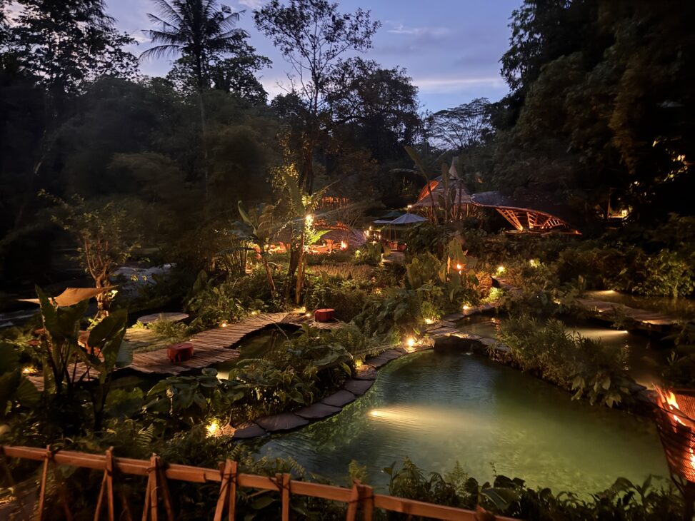 Bambu Indah: Et vidunderligt økoresort i junglen med en fantastisk solnedgang og rigtig god, frisk mad. Besøg sunset baren, tag den åbne bambus elevator ned til floden og prøv toiletterne i grotten!