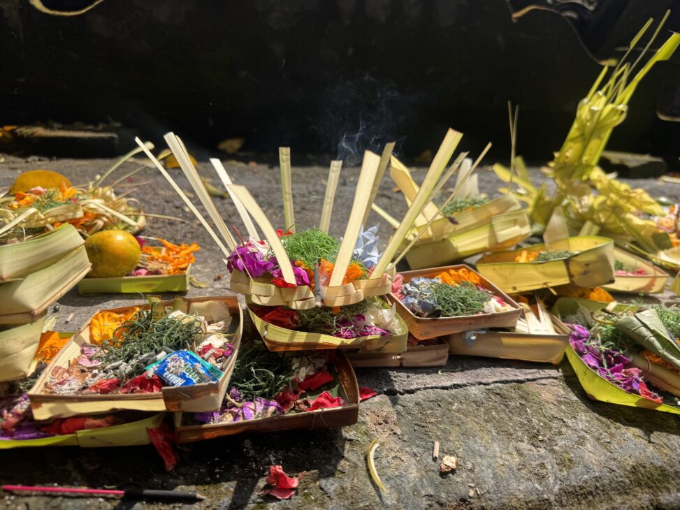 Balineserne stiller små offergaver overalt flere gange om dagen. Pas på du ikke kommer til at træde på dem på fortorvet.