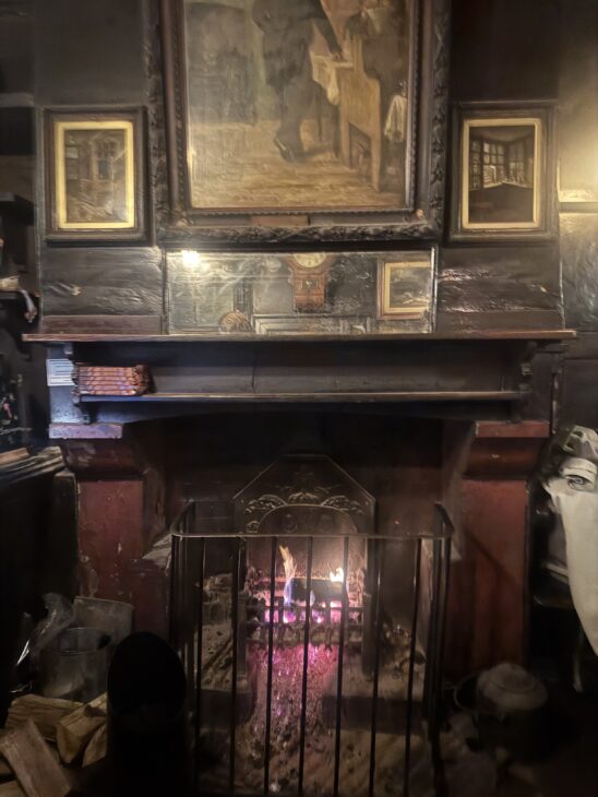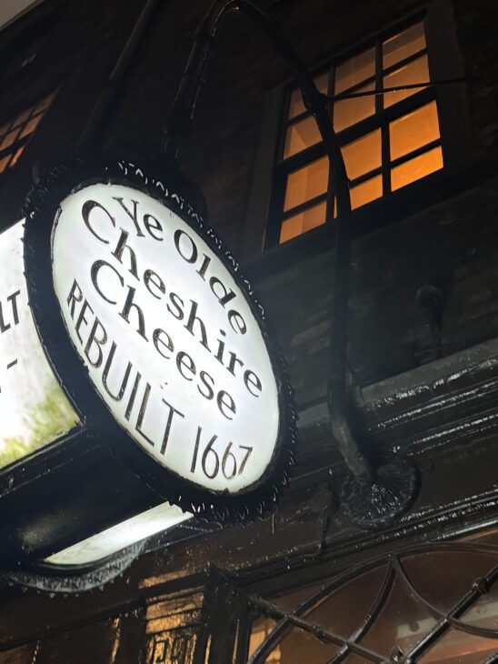 Den klassiske puboplevelse med fish and chips fik vi på Ye Olde Chesire Cheese fra 1667. Og den kan i den grad anbefales. Book bord hjemmefra, men pas på med tidsforskellen. Vi kom en time for tidligt.