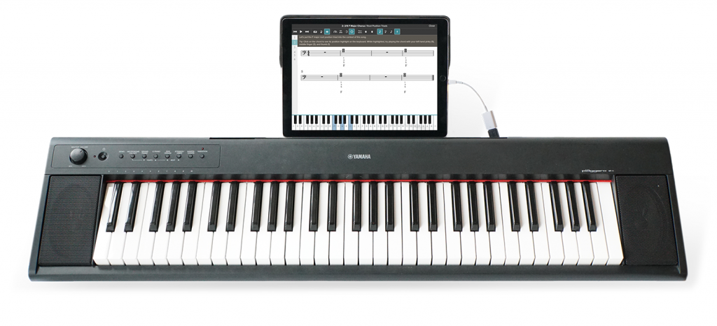 Når du er klar til at prøve kræfter med rigtige tangenter, skal du have fat i et keyboard. Når du allerede har iPad’en, er der ingen grund til at investere i et keyboard, der har lyde indbygget. I stedet kan du købe en såkaldt ’MIDI controller’ eller et MIDI-keyboard, der blot er et ’tomt’ keyboard. Tangenterne styrer i stedet klaverlyde (og synthesizere, orgel osv.) inde i iPad’en. De fleste apps, der lærer dig at spille, kan bruges sammen med sådan et keyboard.